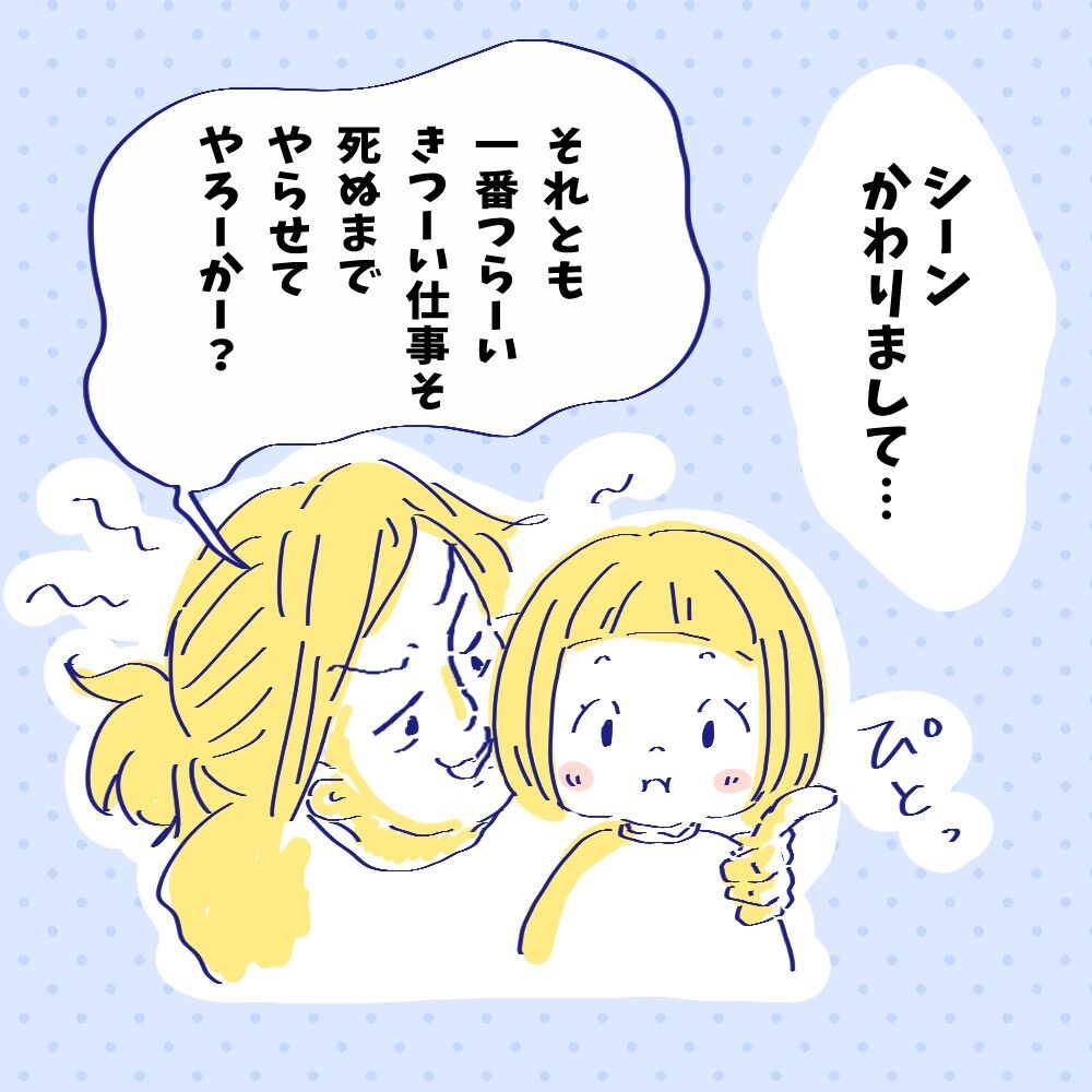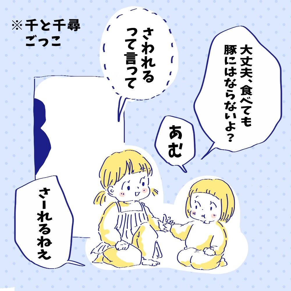 働きたいと叫ぶ2歳次女 2021/01/14 育児疲れを体験したり働きたいと言ったりなかなかすごい2歳児だなと思います笑この千と千尋ごっと、なかなかストーリーに忠実で私は家事のため離脱しましたがちらっと覗いたら風呂掃除のための薬湯を入れようと番台へ札をとってこようとしていました…忠実!!!笑前回の絵日記にもいいねやコメントありがとうございます✨私と同じタイプの方もちらほら😁✨…………………………………………………………【幼稚園退園しました】はこちらからどうぞ!第1話はこちら↓………………………………………………いつもブログをみてくださりありがとうございます☺️コメントも全て拝見しております♪読者登録して頂けるととても嬉しいです✨下のイラストをタップすると登録完了になります♪Instagramもフォローお願いします☺️↓(下のイラストタップ)❣️うちの夫の不器用な娘愛 (コミックエッセイの森)チッチママイースト・プレス2019-09-12ゆっくりと家族になろうよ (メディアファクトリーのコミックエッセイ)チッチママ 「日常漫画」カテゴリの最新記事 < 前の記事次の記事 > コメント コメント一覧 (2) 1. ミクロなできごと。 2021/01/14 11:40 忠実に出来るほどしっかり観れてるってすごいです✨ 働きたい2歳……笑 何してくれるのかな~?ご飯作ってくれたらママ助かっちゃう。 0 chicchidiary がしました 2. Kaor 2021/01/14 11:57 尊い… 私なんて37歳だけど働きたくないのに 笑 インスタもブログも、うちの旦那がイケメンすぎる、の連載も、いつも楽しみに拝見しています 長女ちゃん次女ちゃんは本当に可愛いし、 旦那さまもいいキャラしてると思うんですよ! そこに優しいお母さんもいて、 素敵で最高のご家族です👍🏻 0 chicchidiary がしました コメントフォーム 名前 コメント 記事の評価 リセット リセット 顔 星 情報を記憶 コメントを投稿する